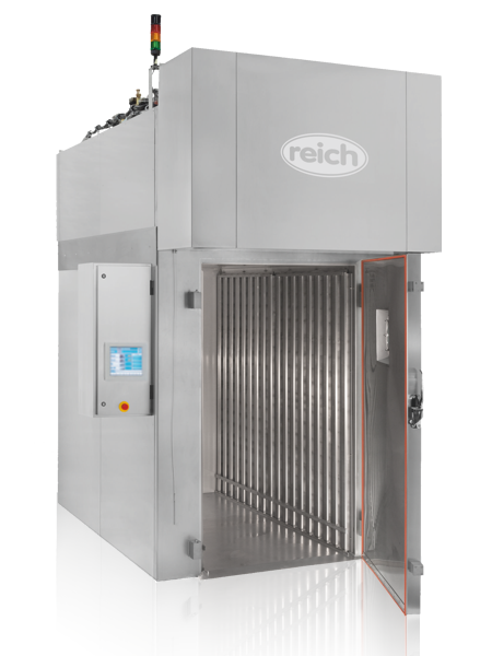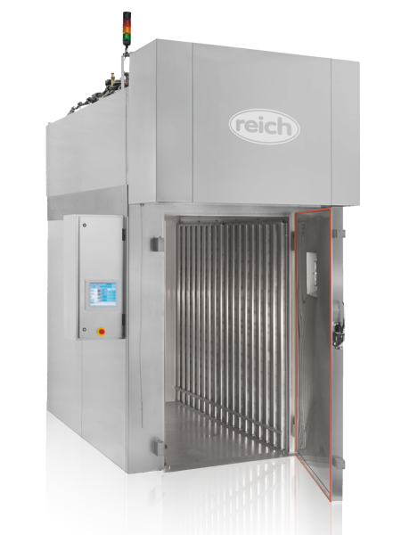Благодаря принципу циркуляции воздуха с поперечным потоком от REICH в зоне обработки обеспечивается абсолютно равномерная температура и, вместе с тем, однородное подрумянивание и образование корочки. При обработке продуктов в гастроемкостях, на противнях или решетках можно использовать всю высоту загрузочной тележки.