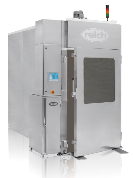 Установка REICH AIRMASTER® UK — это истинный мастер на все руки и классик среди продукции REICH. Она работает с вертикальной подачей воздуха и очень хорошо подходит для вертикально подвешенных продуктов, а при грамотной загрузке и для продуктов в горизонтальном положении. Универсальные установки UK могут поставляться в различных типоразмерах, вместимостью от 1 до 14 тележек, с однорядной или двухрядной загрузкой.