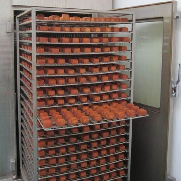 В зависимости от вида продуктов возможна конструкция, вмещающая в каждую тележку до 35 ярусов. При обработке многих продуктов можно увеличить объем загрузки каждой тележки в два раза по сравнению с обычными системами. В связи с сокращением продолжительности технологического цикла благодаря высокой производительности по воздуху достигается еще более высокая эффективность.