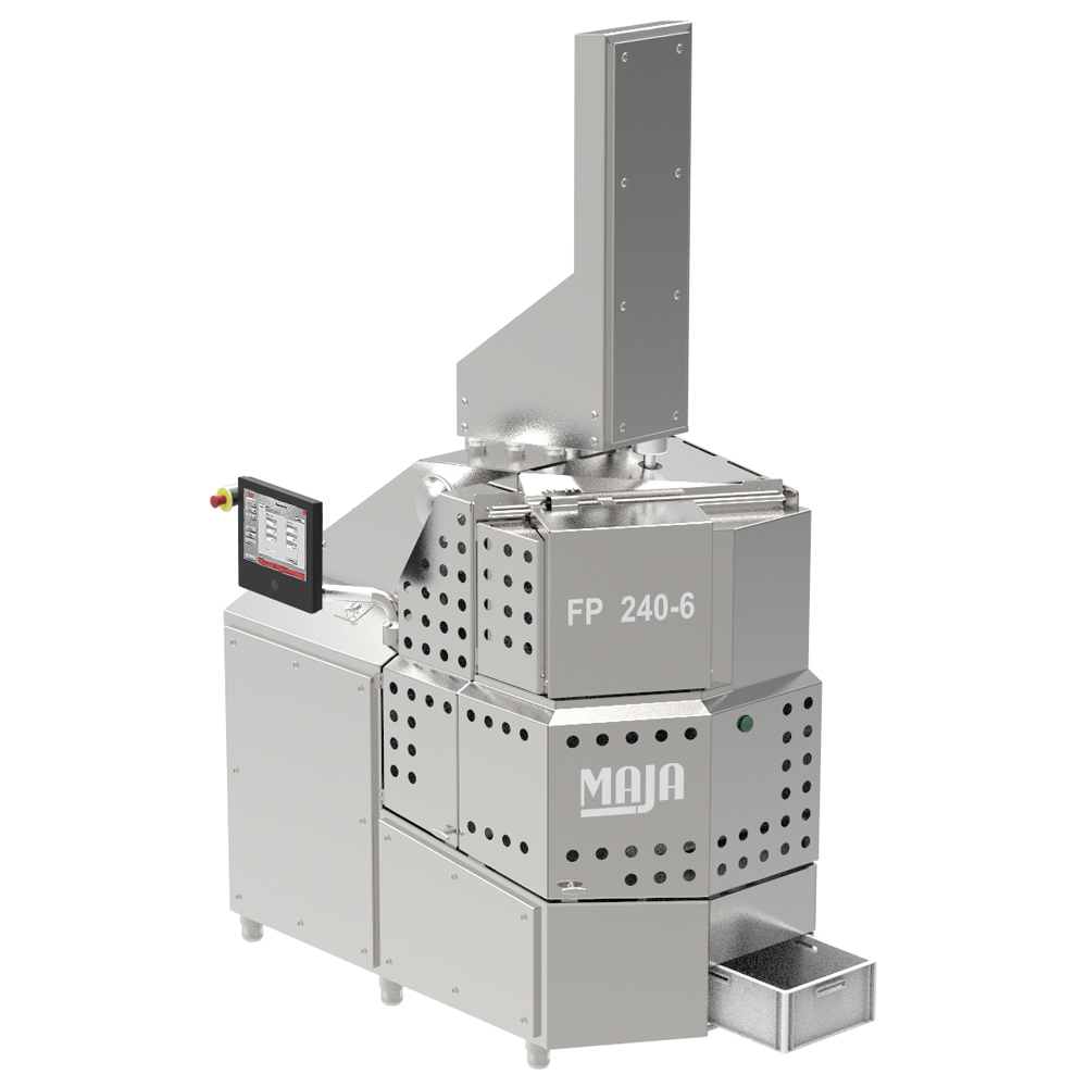 Универсальная система порционирования (нарезки) свежего и замороженного мяса, такого как свинина, говядина, телятина, ягнятина и домашняя птица. Последняя технология порционной нарезки MAJA предлагает самый высокий уровень вариативности (гибкости) для точной нарезки равных по весу порций не только шницеля и стейков, но также и говяжьих рулетов и мясных кубиков. Даже свиные и бараньи отбивные могут быть нарезаны экономичным способом.